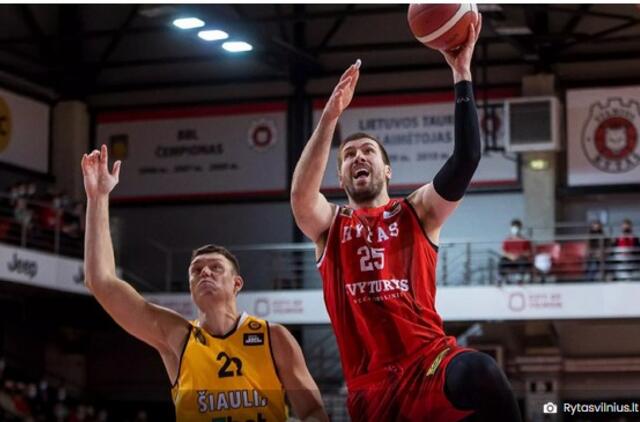 Vilniaus „Ryto“ (2/0) komanda jau turėjo tvirtą pranašumą, bet pabaigoje jį išbarstė ir turėjo paplušėti dėl antrosios pergalės Lietuvos krepšinio lygoje („Betsafe-LKL“). Giedriaus Žibėno auklėtiniai namų rungtynėse 79:76 (17:16, 23:15, 26:14, 13:31) įveikė „Šiaulius-7bet“ (1/2).