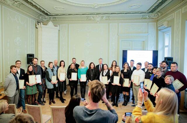 Konkurso laureatus sveikino kultūros viceministrė Daina Urbanavičienė, Valstybinės kalbos inspekcijos viršininkas Audrius Valotka, verslininkas Ignas Staškevičius, konkurso sumanytojas, buvęs inspekcijos vadovas Donatas Smalinskas.