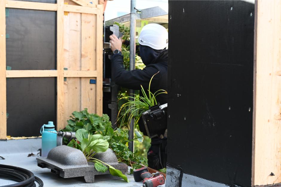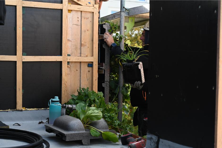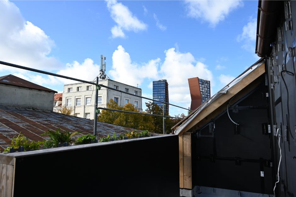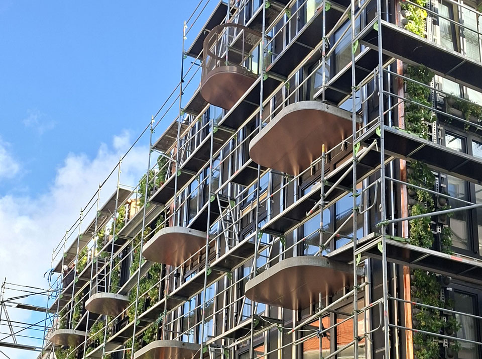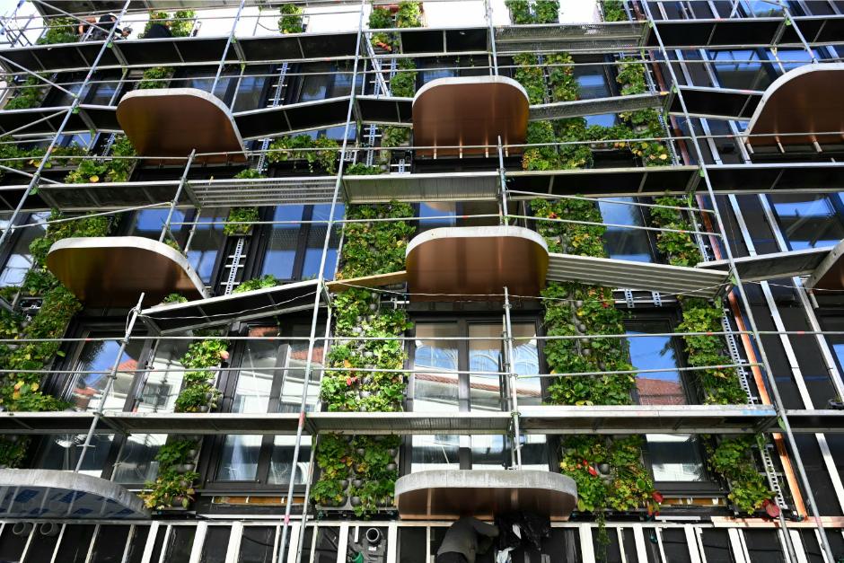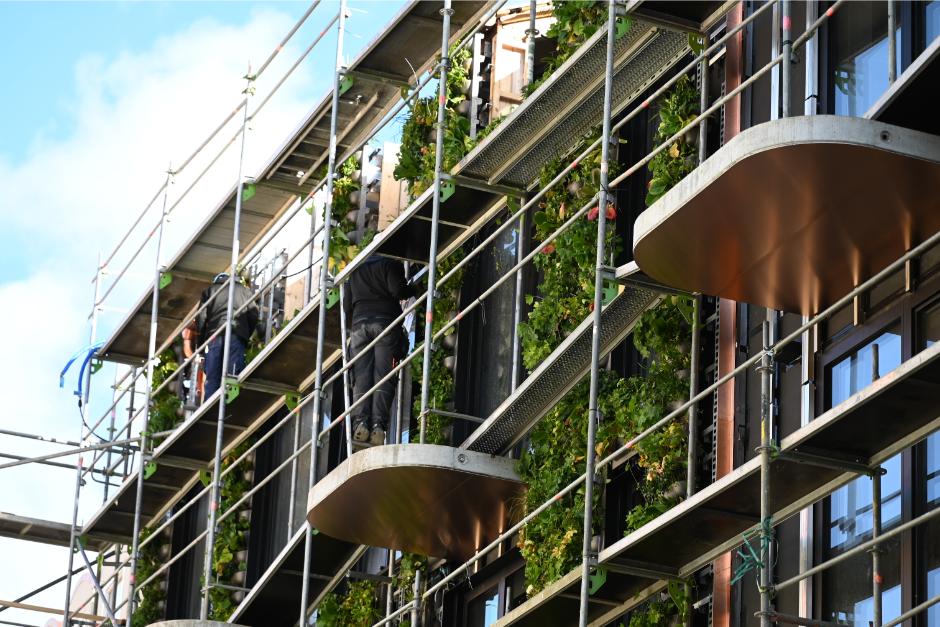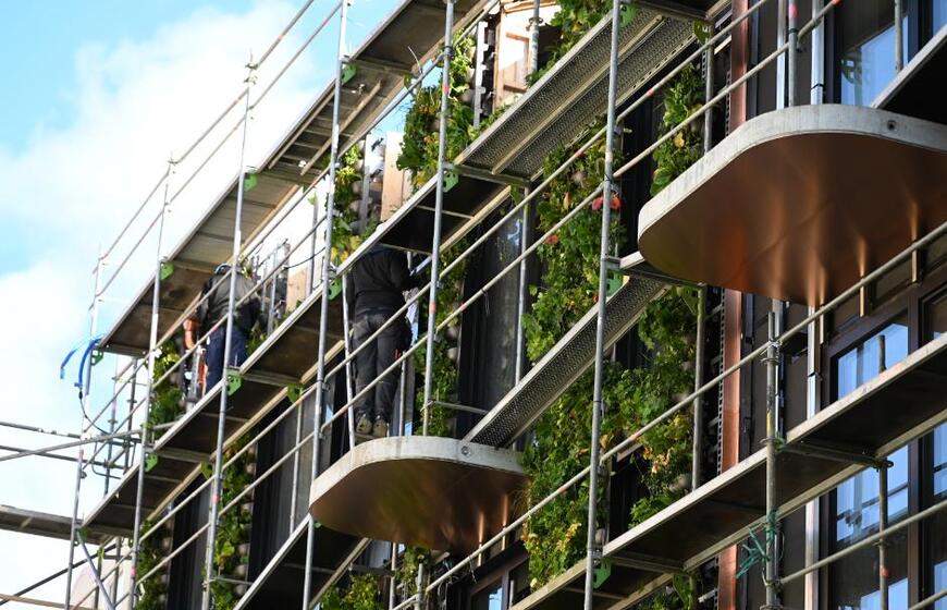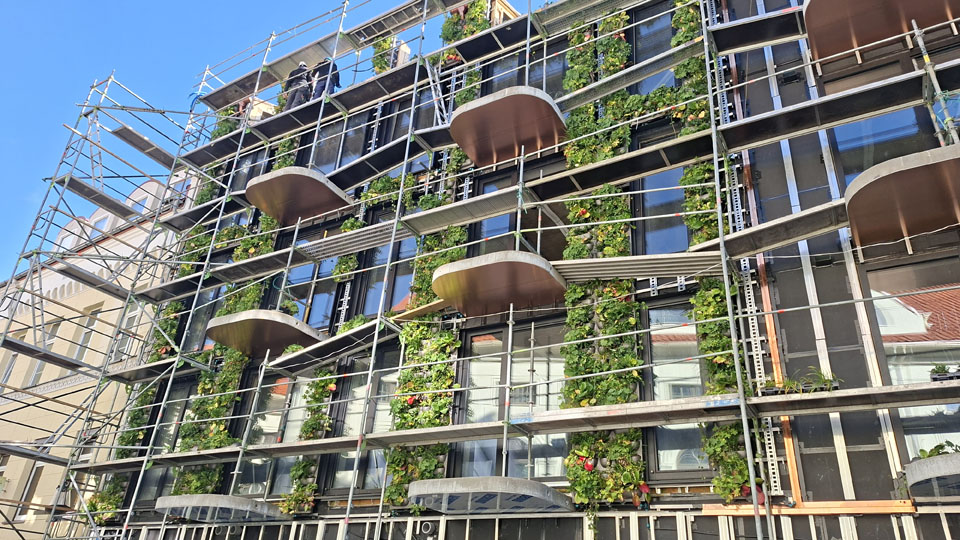 Keturių aukštų su mansarda gyvenamasis namas Žvejų gatvėje išsiskiria fasadu – dalis jo padengtas vario plokštėmis, dalis – apželdinta natūraliais augalais.