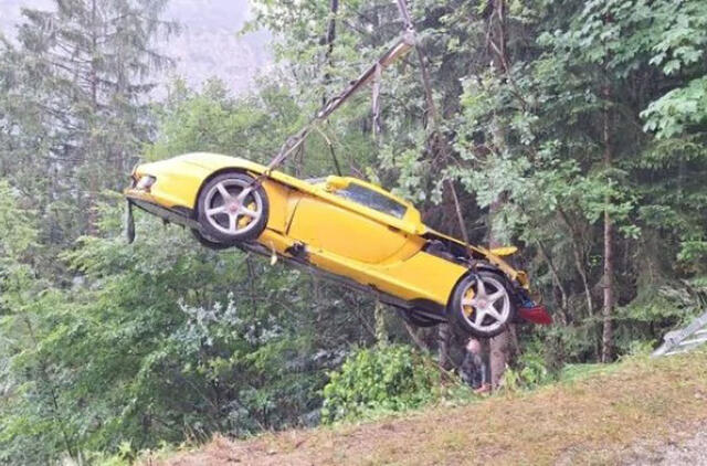 (1)Avarija įvyko kalnų serpantinu Austrijos Alpėse netoli Zalcburgo. „Porsche Carrera GT“ slydo ant lietaus sudrėkinto asfalto ir prarado valdymą.