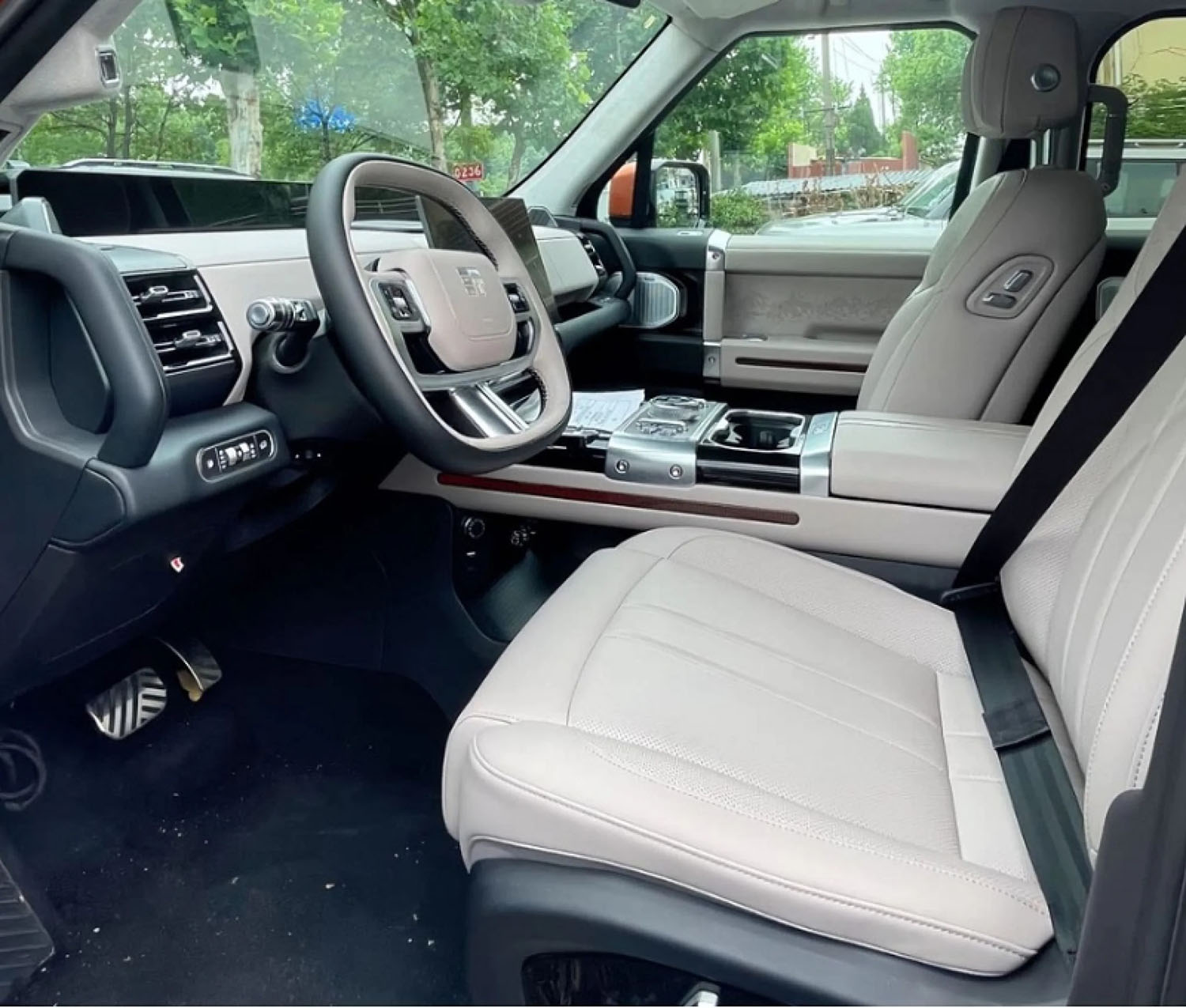 Salone taip pat vyrauja grubūs paviršiai, o vairas yra plokščias viršuje ir apačioje. Siauras skaitmeninis skydelis tęsiasi per visą priekinės panelės plotį, taip pat yra didelis jutiklinis ekranas. Trijose sėdynių eilėse gali sėdėti šeši žmonės, o priekinės sėdynės yra elektra valdomos.