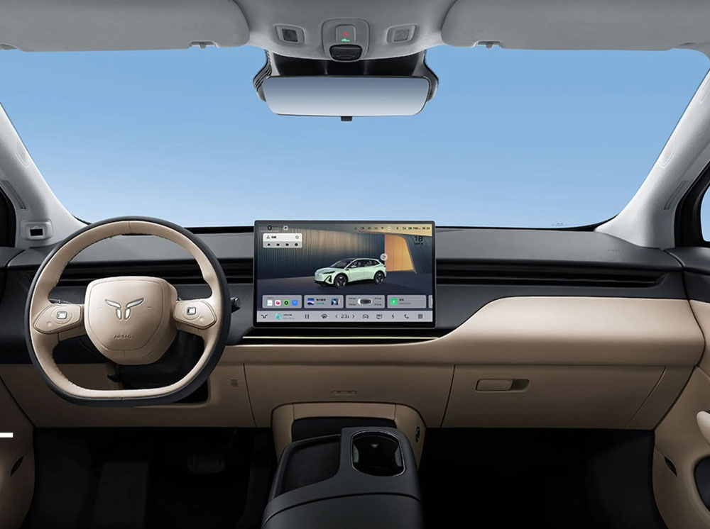 Kaip ir „Tesla“, „Hongqi EHS5“ salone nėra įprasto prietaisų skydelio – visi rodmenys rodomi centriniame 15,6 colių jutikliniame ekrane.