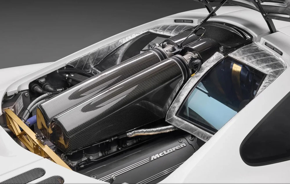 Anglies pluošto kupė „McLaren F1“ pasižymi neįprastu trijų sėdimų vietų išdėstymu: vairuotojo vieta yra centre, o du keleiviai sėdi iš šonų. Kitos modelio ypatybės apima grunto efekto technologiją (kuri pritraukia automobilį prie kelio) ir variklio skyriaus apdailą, pagamintą iš natūralaus aukso, siekiant geresnio šilumos išsklaidymo.