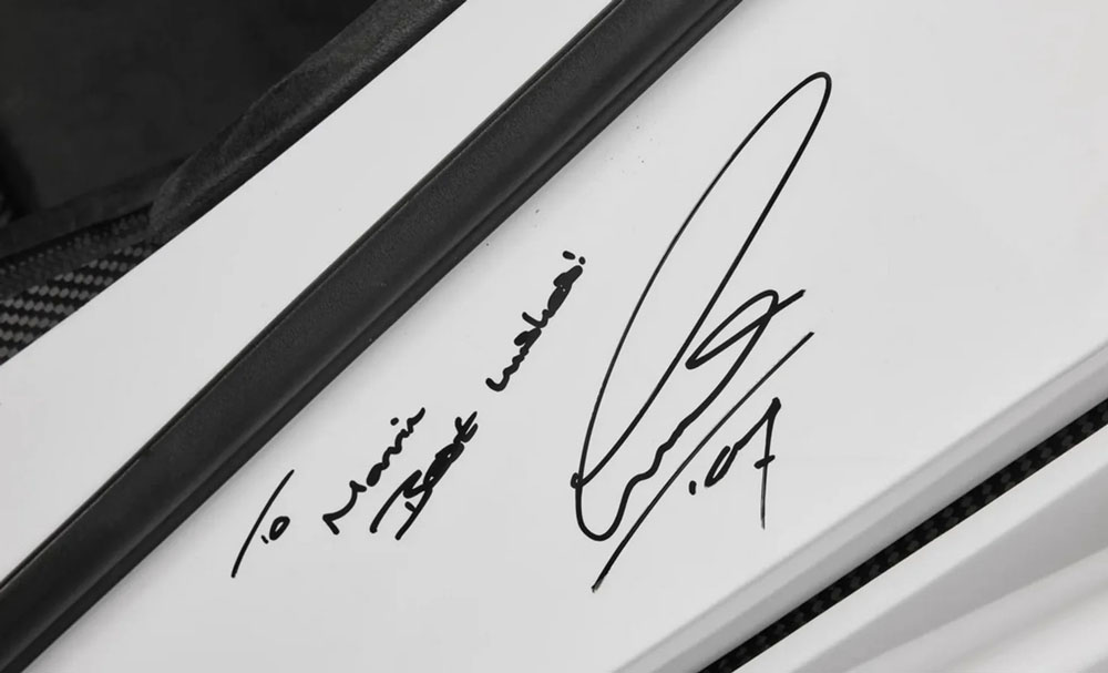1994 metų „McLaren F1“ rida siekia 22000 km. Ant automobilio yra Michaelio Schumacherio ir Lewiso Hamiltono autografai.