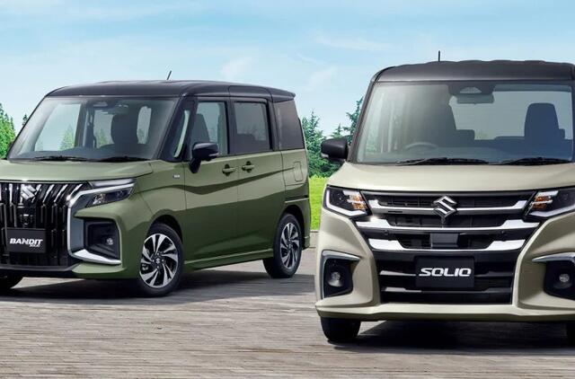 Suzuki Solio Bandit“ minivenas pasižymi agresyvesne priekine dalimi su plačiomis grotelėmis.