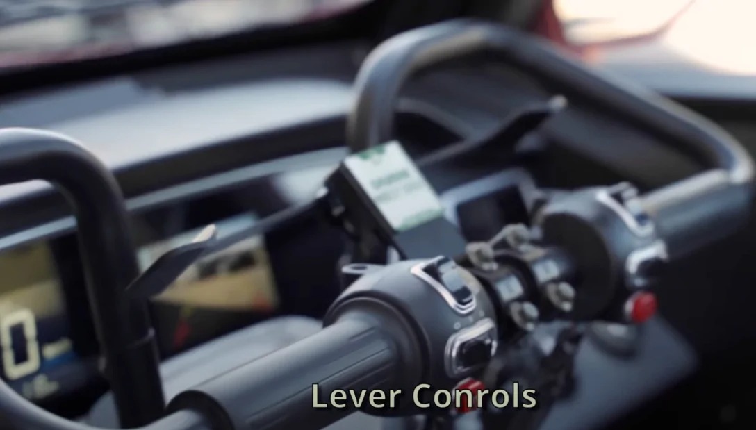Jis pozicionuojamas kaip keturratis elektrinis motoroleris su stogu.