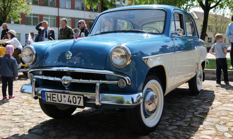 Baltas padangų bortas kontrastavo su tamsesnėmis automobilio detalėmis ir tarsi paryškino apvalias kėbulo formas.