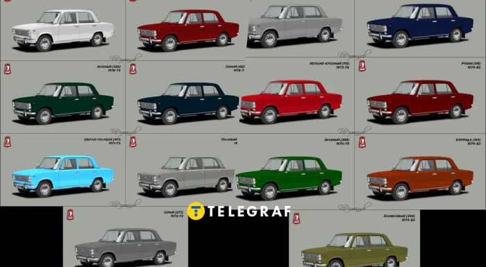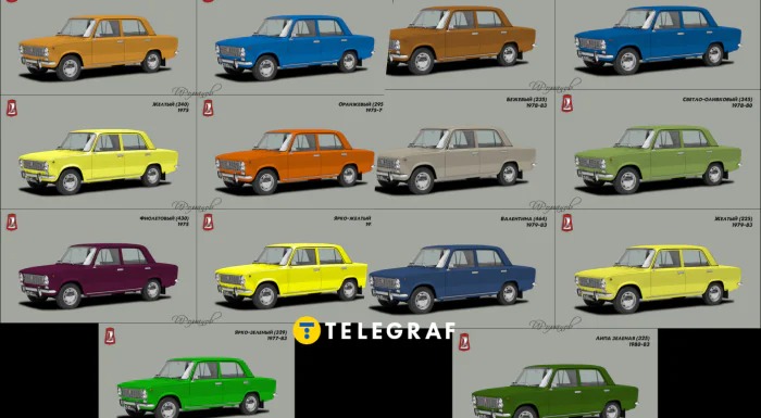 Sovietų automobilių gamintojai „Žiguli“ pirkėjams siūlė įvairią spalvų paletę – nuo vyšninės iki pilkai baltos, įskaitant mėlynos ir žalios spalvas. Vis dėlto juoda spalva liko neprieinama masiniam vartotojui.