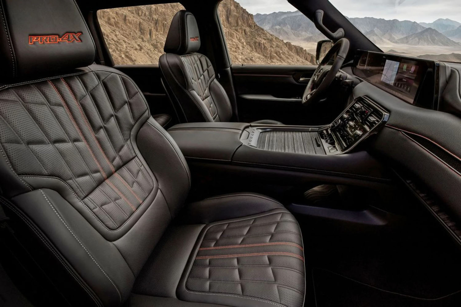 „Nissan Patrol Pro-4X“ komplektacija gana turtinga – panoraminis stogas, du 14,3 colių ekranai, elektrinis pavarų perjungimas, sėdynių šildymas ir ventiliacija.