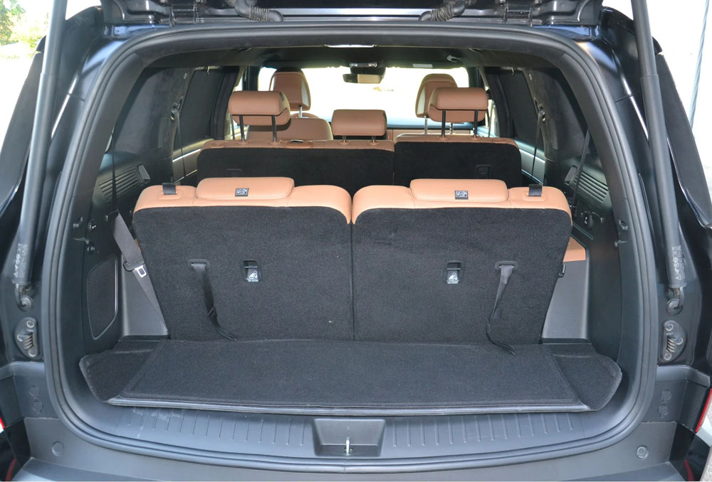 Su visomis sėdynėmis vietos lieka nedideliai bagažinei, tačiau sulanksčius trečią eilę (tai galima padaryti paspaudus mygtuką), susidaro nemaža 642 litrų bagažinė. Sulanksčius antrą eilę, tūris padidėja iki 1963 litrų ir šiuo atveju galima vežti dviejų metrų krovinius.