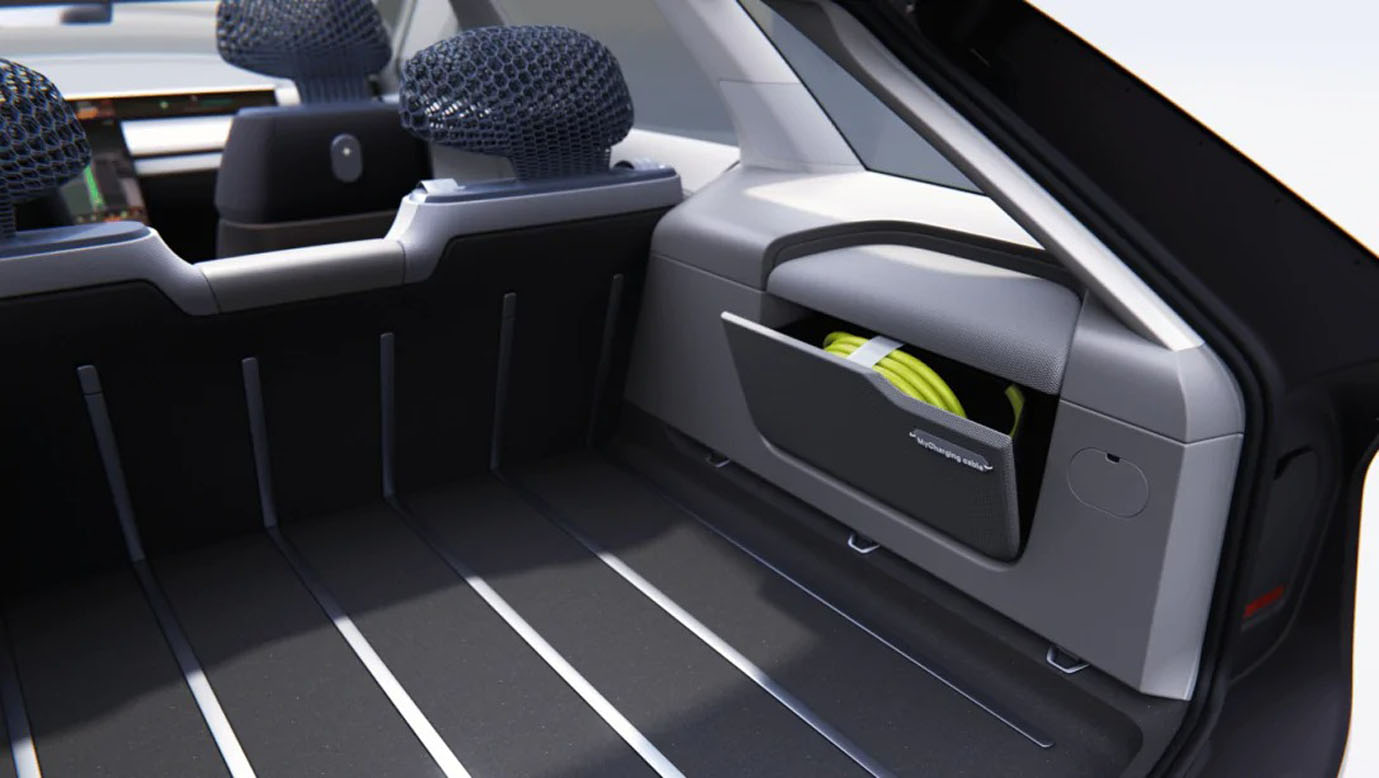 Taip pat kiekvienose duryse paslėptas skėtis. Bagažinės tūris yra 650–1700 l. Joje yra specialus skyrius įkrovimo kabeliui.