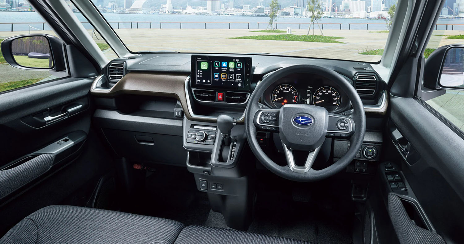 Galinės durys yra stumdomos. Salone taip pat dauguma detalių yra paimtos iš „Subaru Stella“, nors „Subaru Stella“ prietaisų kombinacija yra kitokia. Automobiliui galima rinktis 9 arba 10 colių įstrižainės jutiklinius ekranus. Komplektacija apima apžvalgos kameras ir automatinio stabdymo sistemą.