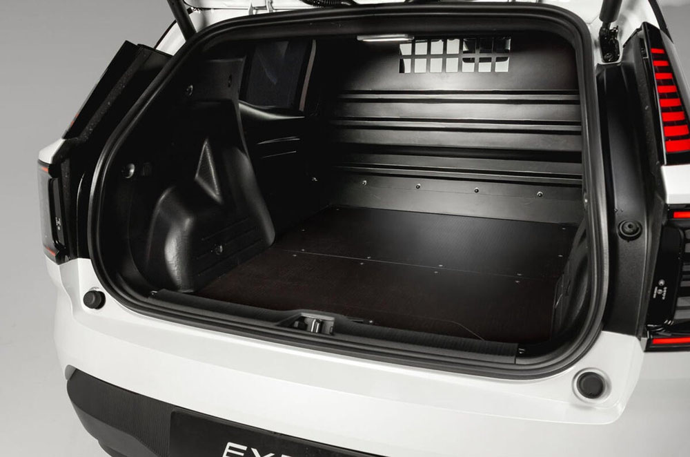 „Cargo“ versijos „Volvo EX30“ elektromobilis išoriškai beveik nepasikeitė, tik buvo tamsinti jo galiniai langai. Pagrindinės naujovės slypi viduje: pašalinus antros eilės sėdynes, suformuotas 1000 litrų talpos bagažo skyrius. Krosoveris gali vežti iki 390 kg svorio krovinius.