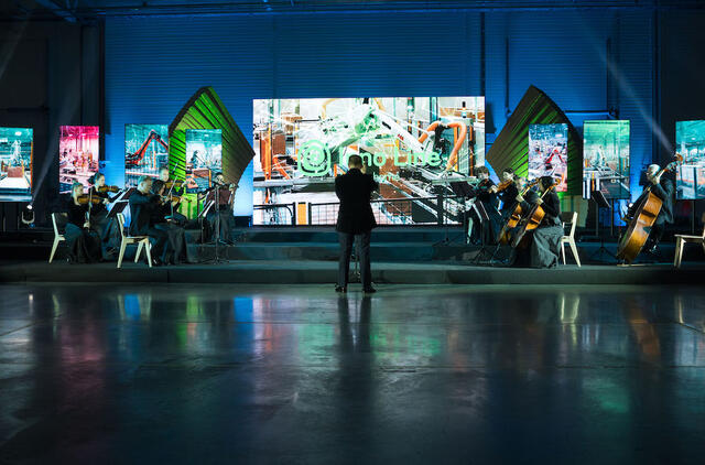 Gamyklos atidaryme orkestras grojo kartu su robotais