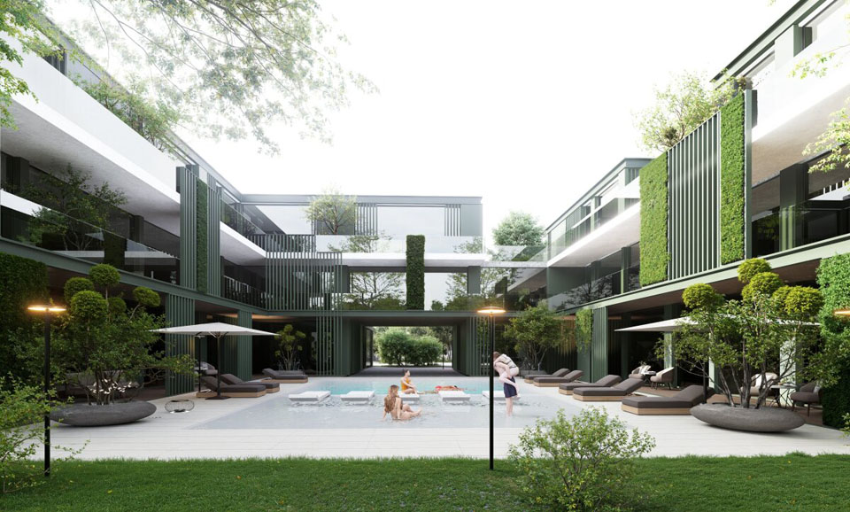 Greta šių pastatų turėtų būti įrengtas apie 120 kvadratinių metrų ploto lauko baseinas.