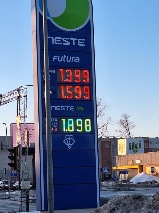 (2)Vairuotojai degalinėse mato tikrą kainų pasiutpolkę. Pirmadienį ryte „Neste“ degalinėse Klaipėdoje dar buvo galima įsipilti dyzelino po 1,6 euro už litrą, o A95 benzino – po 1,4 euro už litrą.