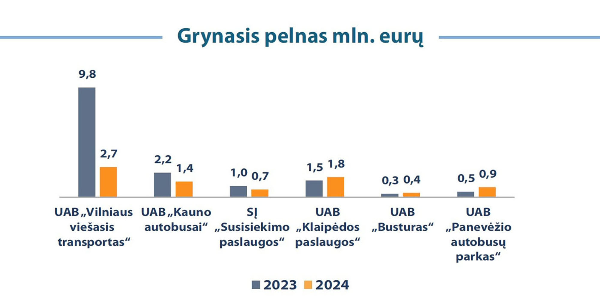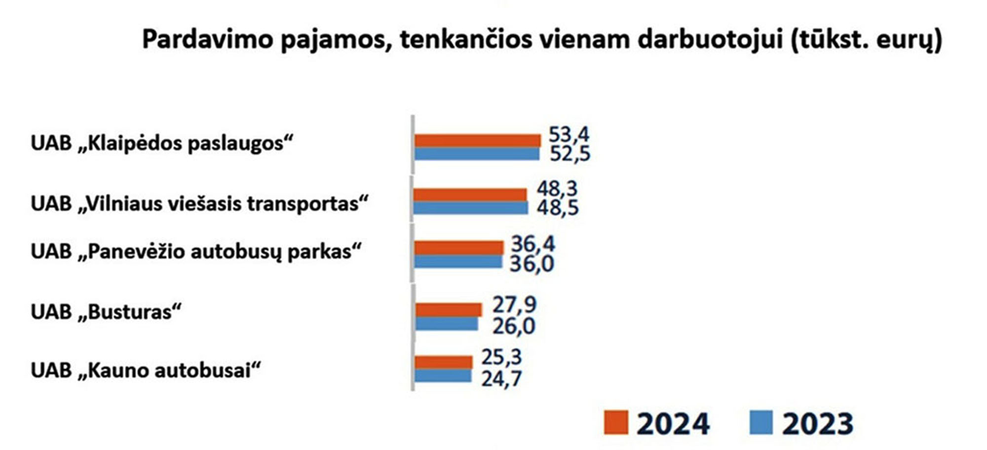 Įmonės pajamos 2024 m. padidėjo 10,7 proc. - iki 19,0 mln. eurų (2023 m. - 17,1 mln. eurų). Pajamų augimą daugiausia lėmė keleivių vežimo pajamų padidėjimas 7 proc.