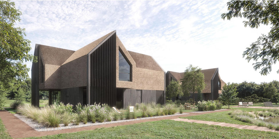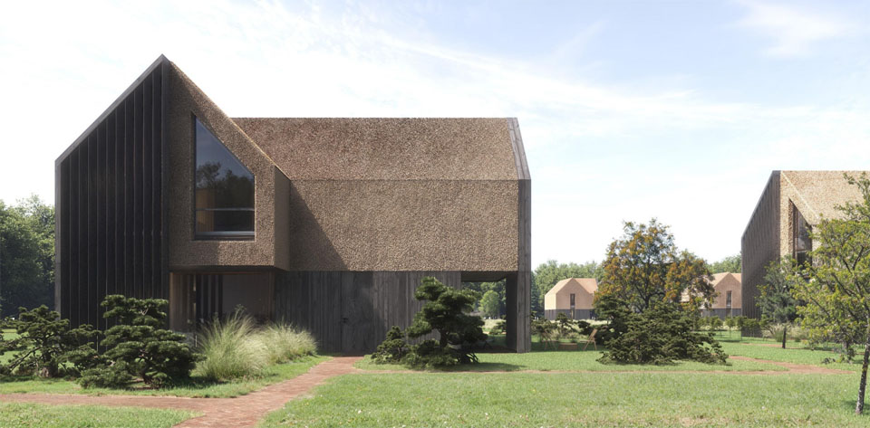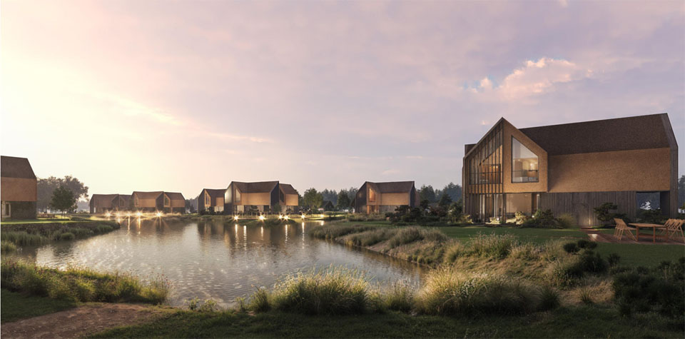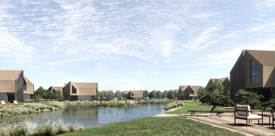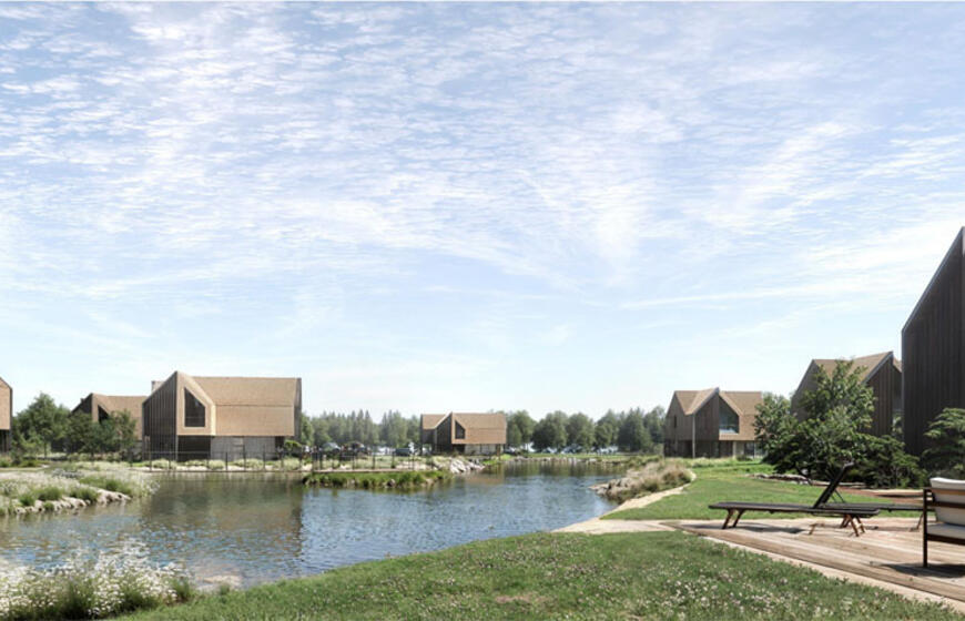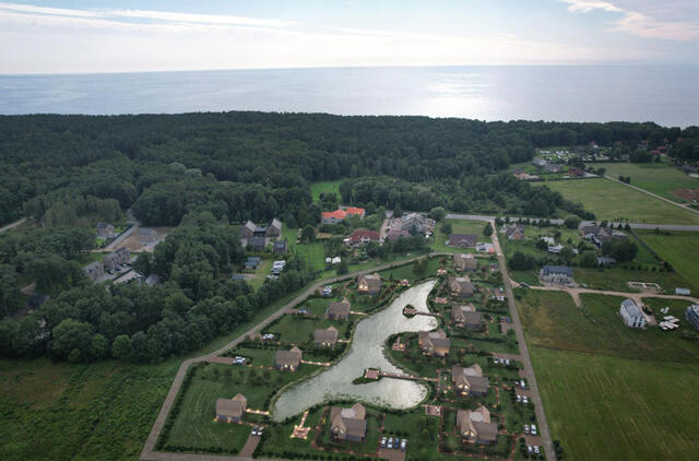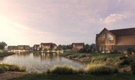 Projektiniuose pasiūlymuose poilsio namai vaizduojami išsidėstę aplink tvenkinį, kurio dabar sklype nėra.