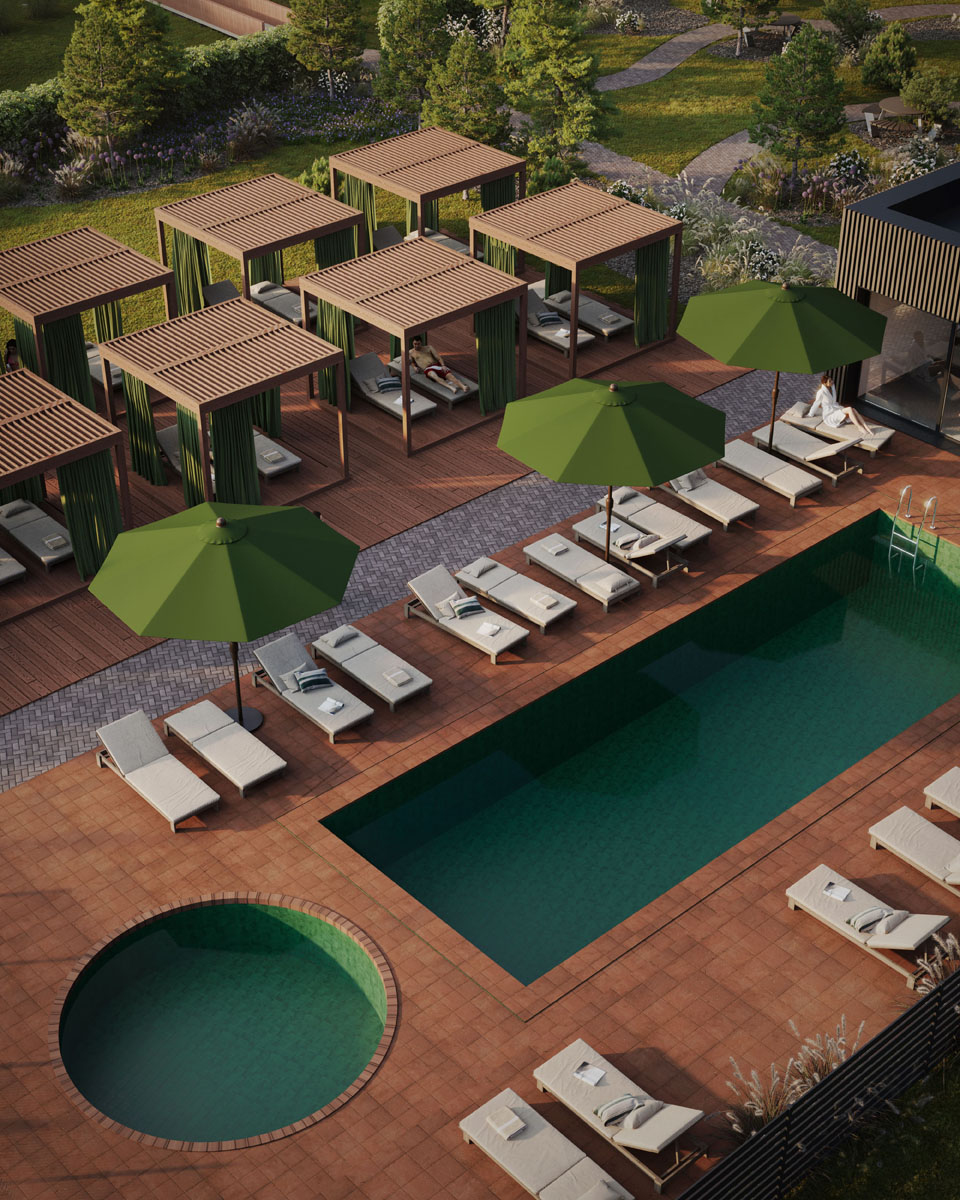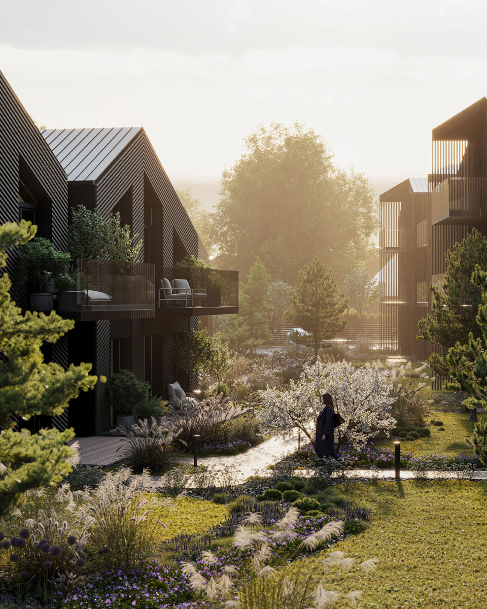 Iš viso suplanuota beveik 200 būstų: nuo 25,9 iki 53,4 kvadratinių metrų ploto apartamentai bei kotedžai su nuosavais žemės sklypais. Komplekso centre kuriama sporto ir poilsio infrastruktūra: bus įrengtas 12 metrų ilgio šildomas baseinas, 5 sporto aikštynai, pirtys, sporto klubas su pilateso erdve, žaidimų zonos vaikams.