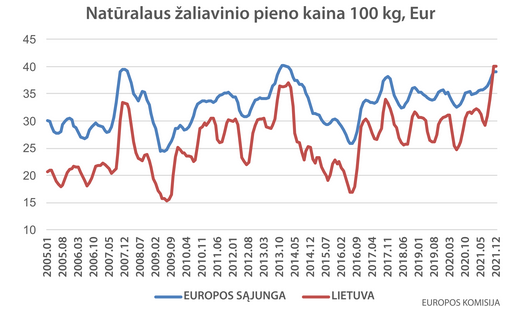 Pasak Lietuvos pienininkų asociacijos „Pieno centras“ vadovo Egidijaus Simonio, mūsų šalyje stebimas drastiškas žaliavinio pieno kainos šuolis – supirkimo kaina per metus išaugo beveik trečdaliu, o pagal augimo tempą jis buvo didžiausias Europos Sąjungoje.