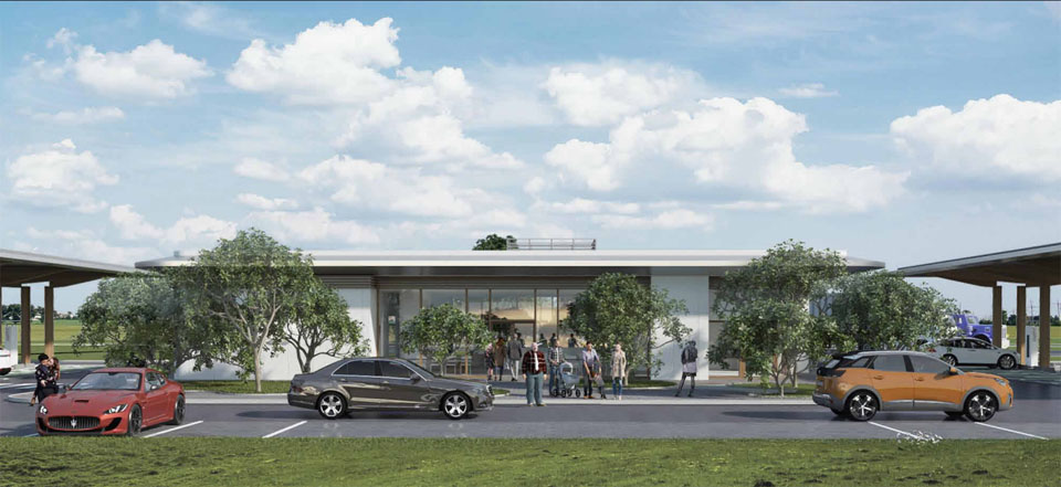 Ties Rietavu statomo centro projektiniai pasiūlymai numato, jog vienu metu čia bus galima krauti 40 elektromobilių.