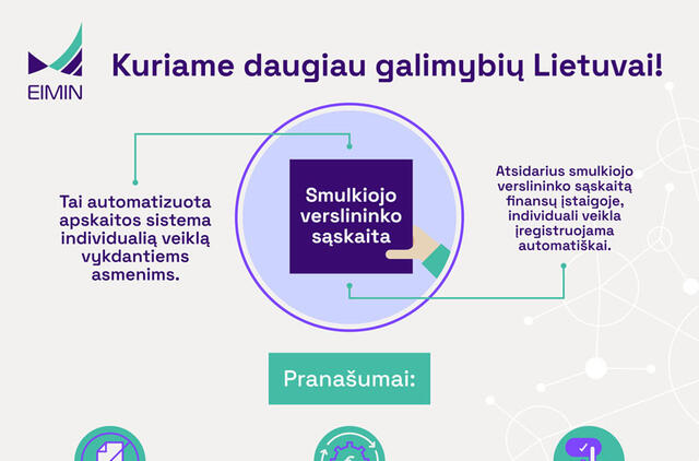„Pristatydami smulkiojo verslininko sąskaitą sukuriame galimybę susitrumpinti administravimui skirtą laiką ir susitelkti į tai, kas išties svarbu. Savanoriškai pasirinktame banke atsidarius sąskaitą ir ją deklaravus, visos įplaukos į šią sąskaitą bus laikomos veiklos pajamomis. Iš jų automatiškai bus apskaičiuojami mokesčiai, o parengtas deklaracijas bus galima pateikti vienu mygtuko spragtelėjimu. Mūsų siūloma priemonė ne tik užtikrins patogumą, bet ir procesų greitį. Smulkiojo verslininko sąskaita - vertinga priemonė verslui“, - pažymėjo finansų ministrė Gintarė Skaistė.
