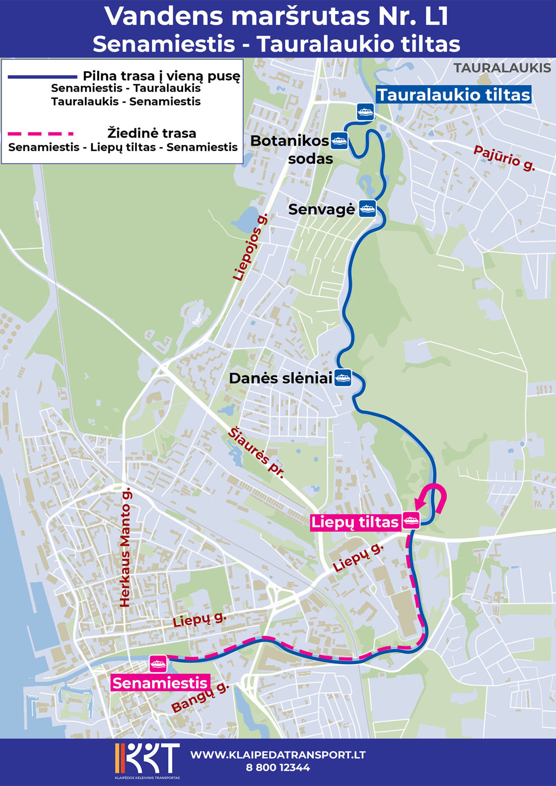 Šia žiedine trasa kasdien bus atliekami 7 reisai, o iki Botanikos sodo ir Tauralaukio bus plaukiama 5 kartus.