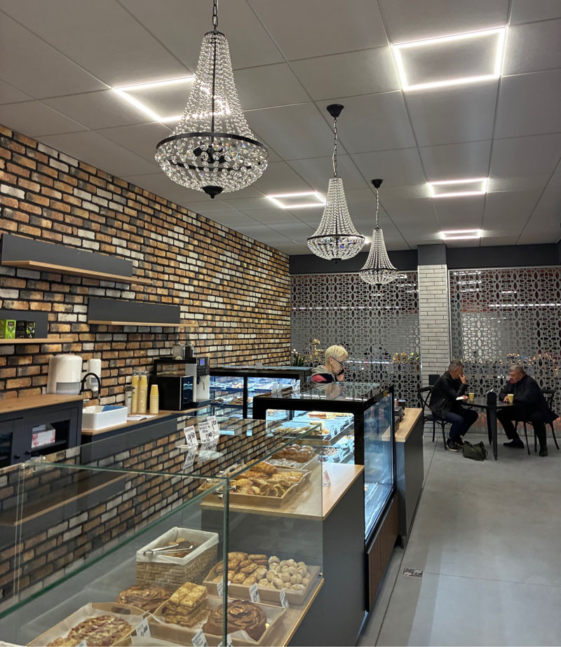 O jaukiai įrengtoje erdvėje galima akimirkai stabtelėti, prisėsti, su draugu išgerti puodelį kavos, pasimėgaujant ką tik iš orkaitės ištrauktu saldėsiu. Tai vieta, kur susilieja skoniai, kvapai ir bendrystė.