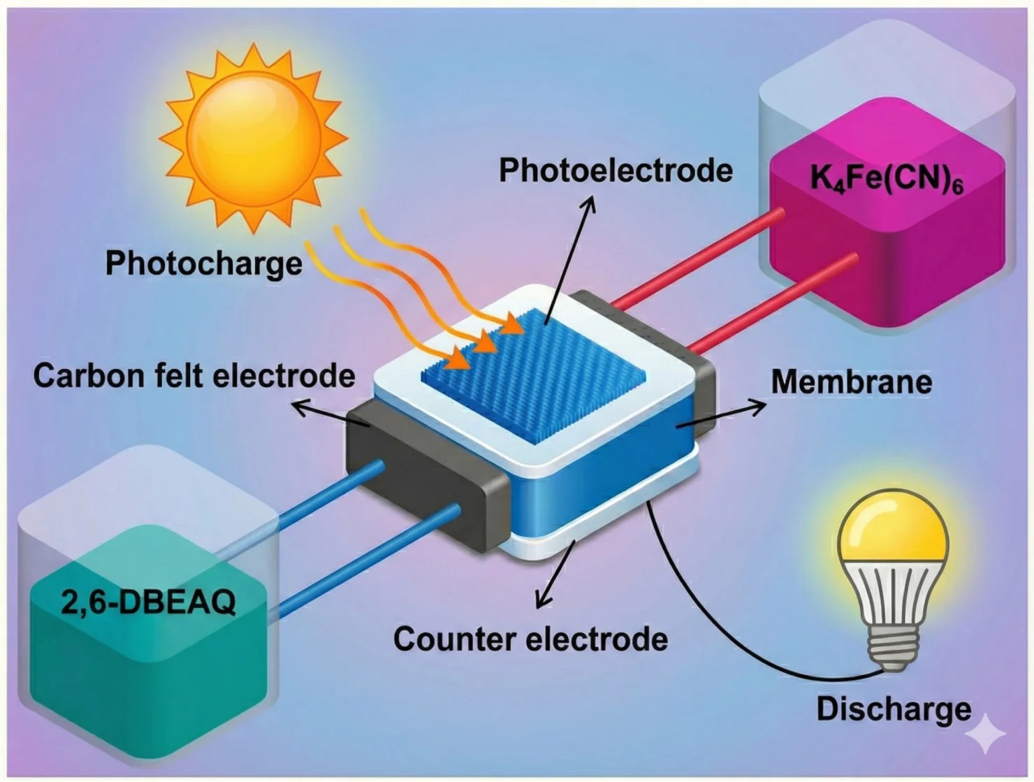 Mokslininkų teigimu, SRFB galima įkrauti tik šviesos pagalba, be išorinės elektrinės apkrovos, ir iškrauti per 10 ciklų, pasiekiant 4,2 % efektyvumą.