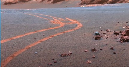 Tiriamasis persikėlė į vietą, kur Marse siautė smarki audra, o žmonės naudojosi milžiniškomis piramidėmis, kad pasislėptų.
