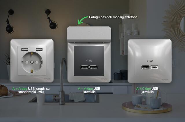 Pasak elektros valdymo bendrovės „Schneider Electric“ inžinieriaus Arnoldo Minelgos, kištukiniai lizdai su USB jungtimi yra skirtingų tipų.