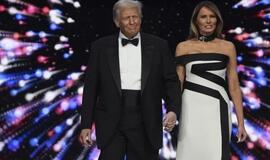 Baltai juoda suknelė ir skraistė ant kaklo: kaip Melania Trump atrodė per inauguracijos pokylį