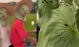 Panašūs į milžiniškus uodus: Kinijoje madingos kaukės nuo saulės iš lotoso lapų