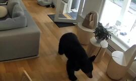 Internete paplito smagus vaizdo įrašas: drąsus mažasis špicas išvijo juodąjį lokį iš namų ir kiemo