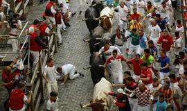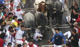 Pamplonoje per bėgimą su buliais nukentėjo dar trys dalyviai