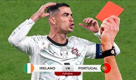 Varžovui trenkęs Cristiano Ronaldo – išvytas, airiai įveikė portugalus, o norvegai skriaudė estus