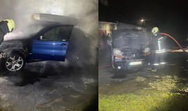 Prie padegtų automobilių atskubėję policininkai gaisrininkų nelaukė: čiupo gesintuvus ir nukreipė į liepsnas