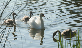 Paralyžiavo gatvę: Klaipėdoje dėl gulbių su gulbiukais nukreiptas eismas
