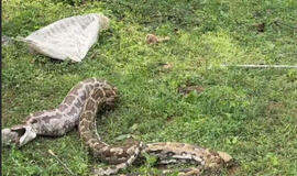 Indijoje pitonas prarijo šunį ir įstrigo tvoroje