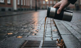 Neįprastas incidentas: už kavos išpylimą į gatvės nuotekas – šimtai eurų bauda