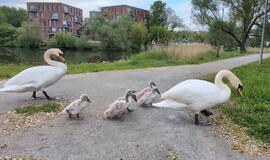 Malūno parko gulbių šeimos kasdienybės akimirkos (video)
