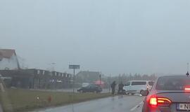 Nelygios jėgos: ūkanotą rytą motociklą ant šono paguldė mikroautobusas