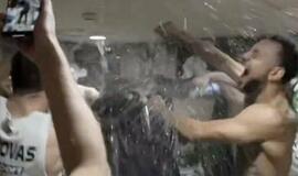Pamatykite: po Kauno „Žalgirio“ pergalės Monake – dušas rūbinėje Tomui Masiuliui