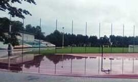 Per liūtis tvino renovuojamas stadionas Kretingoje
