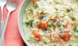 Šis špinatų ir perlinių kruopų risotto puikiai sušildys niūrų vakarą