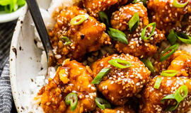 Karšto oro gruzdintuvėje kepta vištiena su medumi ir sezamais