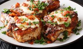 Greita ir pigu, o valgys visi: sūriu užkepti kiaulienos kepsniai ant grilio su itin lengvu garnyru
