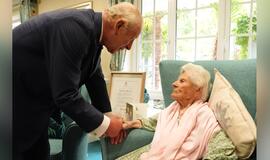 Britų karalius Karolis III aplankė seniausiu pasaulio žmogumi laikomą britę