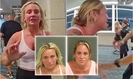 Girtos seserys išmestos iš lėktuvo užpuolė darbuotoją (video)
