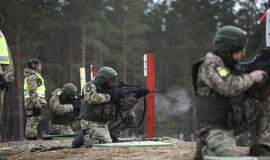 Ukrainoje pratybų metu pastebėtas ginkluotas robotas šuo